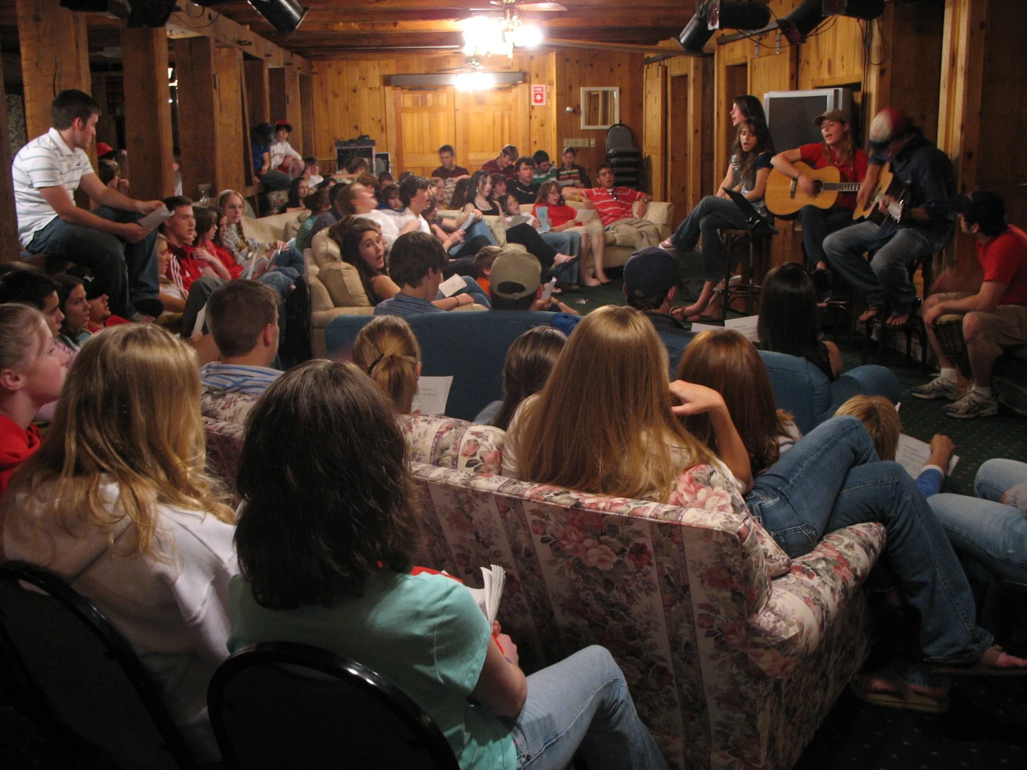 Students join in large group mixers and small group games as they enter the building. After a time of socializing, a simple snack is served, student song leaders take the stage, and a Bible-based message is shared.
